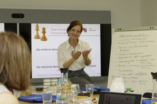 In der anschließenden Diskussion wurden anhand von persönlichen Beispielen Unterschiede bei der männlichen und weiblichen Kommunikation beleuchtet, geschlechter-stereotypische Rollenerwartungen und Rangordnungsspiele erläutert.
