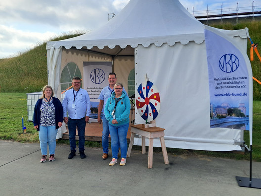 Am 28. Juni 2025 hatte sich die Standortgruppe Husum mit vier Vorstandsmitgliedern auf den Weg nach Jagel zum Tag der Bundeswehr gemacht. Pünktlich um 6 Uhr wurde das Tor passiert und das zugewiesene Zelt bezogen, um für die angekündigten Besucher/-innen gewappnet zu sein. Im Gepäck befanden sich ein Glücksrad, Infobroschüren und unzählige Give-aways, die bereits zur Mittagszeit bis auf einige Wenige vergriffen waren.