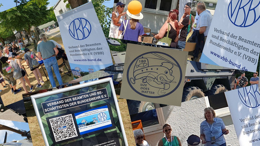 Mit Hubschraubern und gepanzerten Rad- und Kettenfahrzeugen, mit Schwerpunkt auf die taktische sanitätsdienstliche Versorgung unter Gefechtsbedingungen, präsentierte sich die Bundeswehr auf der weitläufigen Ausstellungsfläche der miteinander verbundenen Liegenschaften Ernst-von Bergmann-Kaserne und Fürst-Wrede-Kaserne an 61 Stationen mit ihrer Arbeitswelt, wie es so interessant und vielgestaltig kaum ein anderer Arbeitgeber vermag. Der VBB war mit seiner Standortgruppe München-Fürstenfeldbruck vor Ort und warb nicht nur in eigener Sache für den Verband, sondern als Fachgewerkschaft im dbb für die Berufsbilder Beamtin/Beamter und Tarifbeschäftigte/-r im Ressort BMVg. Die VBB Bundesgeschäftsstelle und der Landesverband Bayern unterstützten das Veranstaltungsteam bestens. Die Organisationszelle der Truppe hatte perfekte Rahmenbedingungen geschaffen. Dazu gehörten auch Infotafeln mit QR-Code vor jedem Stand und eine App für das Smartphone, mit der die Besucher nicht nur gezielt zu den Stationen und termingebundenen Vorführungen navigieren, sondern sich auch über die jeweilige Station bereits im Vorfeld informieren konnten. Dank digitalem Wegweiser, waren die Interessenten am VBB-Stand bereits neugierig genug, die Kolleginnen und Kollegen schnell über die Verbandstätigkeit hinaus gezielt zum Thema Personalbedarf, Einstellung und Dienstherrenwechsel zu befragen. So konnten an diesem Tag zahlreiche Kontakte zum BAPersBw und BwDLZ München vermittelt werden. Ein erlebnisreicher und im Ergebnis hoffentlich nachhaltiger Tag.