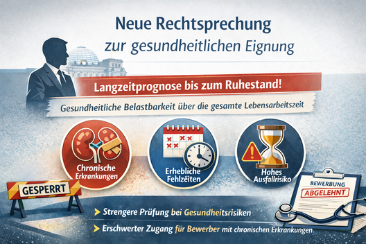 Das Bundesverwaltungsgericht hat die Anforderungen an die gesundheitliche Eignung im Beamtenrecht verschärft und klarer definiert. Die Bewertung erstreckt sich nun über die gesamte Lebensarbeitszeit, wodurch nicht nur akute Risiken, sondern auch langfristige Einschränkungen umfassender in die Entscheidung einbezogen werden. Dies führt dazu, dass der Zugang zum Beamtenverhältnis für Bewerber mit gesundheitlichen Einschränkungen größeren Herausforderungen unterliegt.